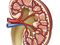 The tracer collects in an area ("hot" spot) of a kidney. This might mean a tumor containing a higher-than-normal number of blood vessels.
