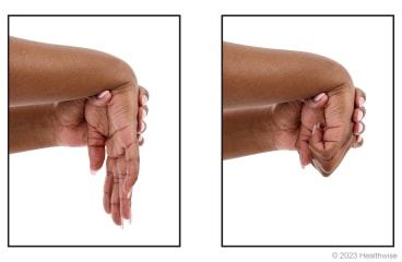 - Bend back your wrist on your affected arm, pointing your fingers up.