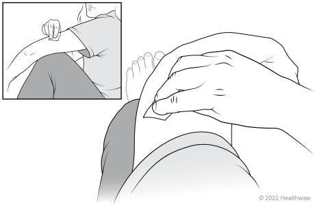 Using your knee, push up the back of your arm to create a "pinched-up" area of skin.